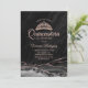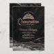 Black and rose gold agate quinceanera invitation. Elegant modern design featuring rock stone marble geode background, faux glitter rose gold, tiara confetti and typography script font. Trendy invite card perfect for a stylish 15th bday celebration. Printed Zazzle invitations or instant download digital printable template.