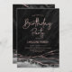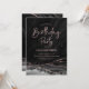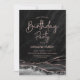 Black and rose gold agate birthday party invitation. Elegant modern design featuring watercolor agate marble geode background, faux glitter rose gold and typography script font. Trendy invite card perfect for a stylish women's bday celebration. Printed Zazzle invitations or instant download digital printable template.
