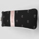 An elegant blakc background, with a rose gold coloured ribbon. Personalise and add your monogram letters, initials and name. Blush and dark rose gold coloured letters. The name is written with a modern hand lettered style script. The monogram as a background pattern.