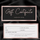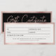 A beautiful modern business faux rose gold pink and black gift certificate voucher with chic script, and business logo. This gift certificate design is ideal for all types of businesses. Simply customise and make it your own.