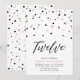 Celebrate your special day with this simple girl's 12th birthday party invitation. This design features a stylish lettering script "Twelve" with hexagon-shaped confetti with a black & rose gold colour combo. More designs available at my shop BaraBomDesign.