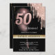 Black Rose Gold Glitter Balloon 50th Birthday Invitation