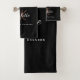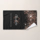 A chic black background decorated with rose gold glitter drops. Personalise and add your first name, monogram initials and full name. Rose gold and white coloured text. The name is written with a modern hand lettered style script.