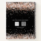 Black background. Rose gold, blush confetti. The title: journal written with a girly modern hand lettered style script with swashes. White coloured letters. A notebook for drawings, sketching, notes and school homework.