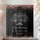 Perfect for photo booths, dessert tables, cake displays, or the main party backdrop, this design blends modern glamour with classic princess elegance. The rich black tones paired with shimmering rose gold accents add a sophisticated and regal touch, making it ideal for an elegant quinceañera party theme.