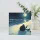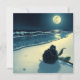 A pretty blank notecard to write yourself or someone else a note on. A serene night on the beach. A lone black rose laying on the sand. A full moon in the sky. Waves crashing on a sandy shore.