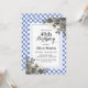 This elegant flora birthday invitation features gold and black rose flowers with leaves arrangement on the white and light purple-blue chequered backdrop.