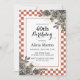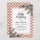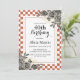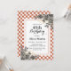 This elegant flora birthday invitation features gold and black rose flowers with leaves arrangement on the white and rust chequered backdrop.