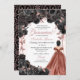 Elegant Black and Rose Gold Floral Quinceanera Birthday Invitation