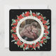 Black Round/Square Red Berries+Eucalyptus Photo Holiday Card