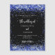 A stylish black background, decorated with royal blue confetti. Personalise and add your names and details.