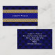 A stylish business card with a Royal Blue and Black damask pattern, gold chain embellishment and white print. =========