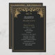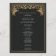 Unveil the magic of your big day! These mediaeval fantasy wedding programs feature a regal lion surrounded by intricate gold florals and a monogram against a black background, blending elegance with a touch of grandeur. A perfect keepsake for your fairytale celebration! The gold featured on this item is NOT real foil and is printed in flat colours.