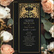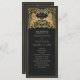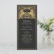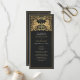 Unveil the magic of your big day! These mediaeval fantasy wedding programs feature a regal lion surrounded by intricate gold florals and a monogram against a black background, blending elegance with a touch of grandeur. A perfect keepsake for your fairytale celebration! The gold featured on this item is NOT real foil and is printed in flat colours.