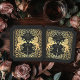 Add royal charm to your tablescape! These custom wedding coasters feature a majestic lion and floral design with your names and monogram, all in luxurious gold against a black background. Perfect for a mediaeval fantasy celebration with timeless elegance!