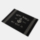 Welcome guests to your fishing boat, sailboat, yacht, or houseboat with this charming nautical doormat. Personalised design features your boat name, ship's registry, and year established in neutral tan lettering with an anchor illustration. Rope stripe detailing on a rich black background completes the design.