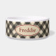 Black and cream gingham decorates this cute, rustic pet bowl. Customise this pet food bowl by changing the name to suit your needs. The design is from original art.