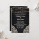 Add a touch of bohemian charm to your wedding invitations with this Black Rustic Wooden Wedding Invitation. The black wooden background sets the stage for a magical celebration, adorned with glowing string lights that create a romantic atmosphere. Delicate white floral lace patterns frame the corners of the invitation, adding an elegant and feminine touch. The combination of a vintage script font and a legible serif font in white creates a beautiful contrast against the dark background, ensuring that all the details are easily readable. This invitation is perfect for couples seeking a unique and enchanting wedding theme. Set the tone for your special day with our Rustic Elegance Wedding invitations that will leave a lasting impression on your guests.