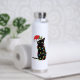 Black Santa Cat Tangled Up In Lights Christmas Water Bottle