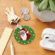 Design with illustration of African American Santa Clause, Christmas holidays design for kids on green seamless pattern background with green stars;