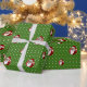 Design with illustration of African American Santa Clause, Christmas holidays design for kids on green seamless pattern background with green stars;