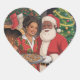 Black Santa & Mrs. Claus Christmas Card Heart Sticker