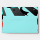 This design features a happy Valentines heart in green with black satin ribbon wrapped around the heart. The ribbon says "I love You" on it. There are red hearts around the centre heart. Rays of black come across the back from the corner of the design. Customise the envelope with your own liking. These envelope come in assorted sizes. Matches the greeting card "Black Satin". Change the colour of the backround to your favourite colour.