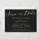 Gold foil (faux) wedding Save the Date invitation cards with customisable text printed on black background