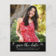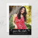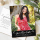 Make sure all your friends and relatives will be able to celebrate your daughter’s milestone graduation! Send out this girly, stunning, simple, modern, personalised photo “Save the Date” postcard for an event to remember. A fun, playful visual of white script handwriting and cute, playful hearts, along with her name, class year, and school, overlay a black band. On the front, add the photo of your choice and personalise the custom text with your grad’s name, school and class year. Your custom message and return address adorn the back. Matching invites, thank you cards, cap toppers, plaques and other graduation goodies are also available in this trendy and stylish collection. Guaranteed to add stylish fun to her special occasion!