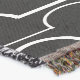 This throw blanket has an art deco design of white half circles connect with lines on a field of black.