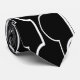 This necktie has an art deco design of white half circles connect with lines on a field of black.