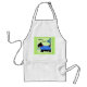 Show your dog love with this cute apron with a black terrier dog and personalised with your dog's name and the word "chef". Customise your dogs name and words above the art image or delete if you prefer. This whimsical black Scottie Terrier is wearing a blue sweater coat with tonal blue stars and a red collar. A lime green and turquoise ball is behind the Scottie and a large white dog bone is at his or her front paw. The background is a lime green tonal stripe pattern. A serpentine line border surrounds the dog image to make a stylish, trendy and fashionable decorative chef's apron. Three turquoise teal blue flowers are above the dog. This cute, cuddly and trendy dog is original art by Phyllis Dobbs and will melt the heart of a dog lover. This Scottie is one of a series of 6 Scotties and all are fully customisable to make it your own!