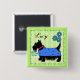 You will enjoy wearing this name badge pin personalised with your name or your dog's name. Or let your dog wear it pinned to his or her dog sweater. Show your dog love with this cute name badge with a black terrier dog and personalised with your dog's name, your name or other words. Customise the name above the art image or delete if you prefer. This whimsical black Scottie Terrier is wearing a blue sweater coat with tonal blue stars and a red collar. A lime green and turquoise ball is behind the Scottie and a large white dog bone is at his or her front paw. The background is a lime green tonal stripe pattern. A serpentine line border surrounds the dog image to make a stylish, trendy and custom name badge pin. Three turquoise teal blue flowers are above the dog. This cute, cuddly and trendy dog is original art by Phyllis Dobbs and will melt the heart of a dog lover. This Scottie is one of a series of 6 Scotties and all are fully customisable to make it your own!