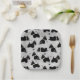 Cute black Scottie dogs wearing collars, with pawprints and dog bones, cute black Scottish Terrier pattern.