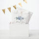 black script dusty blue floral wedding favour bags