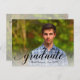 The word "graduate" in an elegant black script along with name and class year (or delete that line) SAVE THE DATE postcards for your Graduation Party or Graduation Ceremony. Put your photo on the front - we've added a white gradient overlay at the bottom so "graduate" is readable over your photo. Add the same or different photo on the back address side - we've added a soft photo overlay to the back image to make the information easier to read.