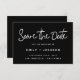 Black Modern and Elegant Minimalist Hand Lettered Script Save the Date Wedding Postcard. The save the date invitation card includes modern hand lettered script typography with a chic and simple design that you can add your customised engagement photograph picture to.