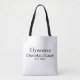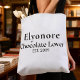 Personalized chocolate lover tote bag featuring your name and special year. A clean, elegant typography design perfect for true chocolate lovers. Makes a thoughtful personalized gift for women who love sweet treats and minimalist style.