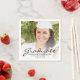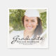 Modern graduation party napkins featuring a custom photo. Easily replace the sample image with a photo of your graduate. The word "Graduate" appears in black handwriting script, with the name, school, and year of graduation below in sans serif font. A white gradient overlay helps make the black text pop! Ideal for high school or college graduation.