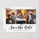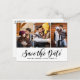 Black Script Three Photo Collage Save the Date Announcement Postcard