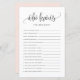 Who knows the mum-to-be the best? Add this fun and playful game to your baby shower. It features a black whimsical script, classic typography, blush pink background. You can personalise the backside of this baby shower game card. This guessing game card is perfect for any baby shower theme and season.