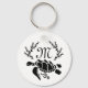 Sea turtle swimming in a tribal silhouette style. While the original was a based of an green tortoise, the shape of the segments bagging to be twisted and turned. Above the shell to the left and right is black seaweed leaving space for text, default is a letter "M" m is short for monogram. And below the turtle are water swirls.