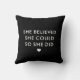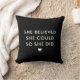 Black She Believed She Could So She Did Pillow. Modern statement pillow that will be a perfect accent to any room. This motivational pillow features modern typography. She believed she could, so she did. Other colours are available.