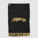 Black & Shimmery Gold Personalised Golf Towel. Personalise and add custom text to the design.