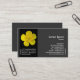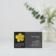 A business or profile card template with a band on the left, with a single flower motif, decorated with vertical text captions labelling the address area and contact details. The reverse of the card has the same colour theme as the front but has been left blank which can be left as is, or further customised. Suitable for a variety of businesses.