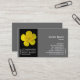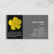 A business or profile card template with a band on the left, with a single flower motif, decorated with vertical text captions labelling the address area and contact details. The reverse of the card has the same colour theme as the front but has been left blank which can be left as is, or further customised. Suitable for a variety of businesses.