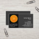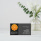 A business or profile card template with a band on the left, with a clementine slice motif, decorated with vertical text captions labelling the address area and contact details. The reverse of the card has the same colour theme as the front but has been left blank which can be left as is, or further customised. Suitable for a variety of businesses.