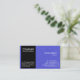 A business or profile card template with a band on the left, decorated with vertical text captions labelling the address area and contact details. The reverse of the card has the same colour/texture theme as the front but has been left blank which can be left as is, or further customised. Suitable for a variety of businesses.