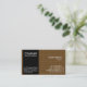 A business or profile card template with a band on the left, decorated with vertical text captions labelling the address area and contact details. The reverse of the card has the same colour/texture theme as the front but has been left blank which can be left as is, or further customised. Suitable for a variety of businesses.