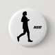 Black silhouette painting of a female runner, running, with the word RUN, is printed on custom pin on buttons. This painting was inspired by a cross country runner. Purchase at CherylsArt on Zazzle.